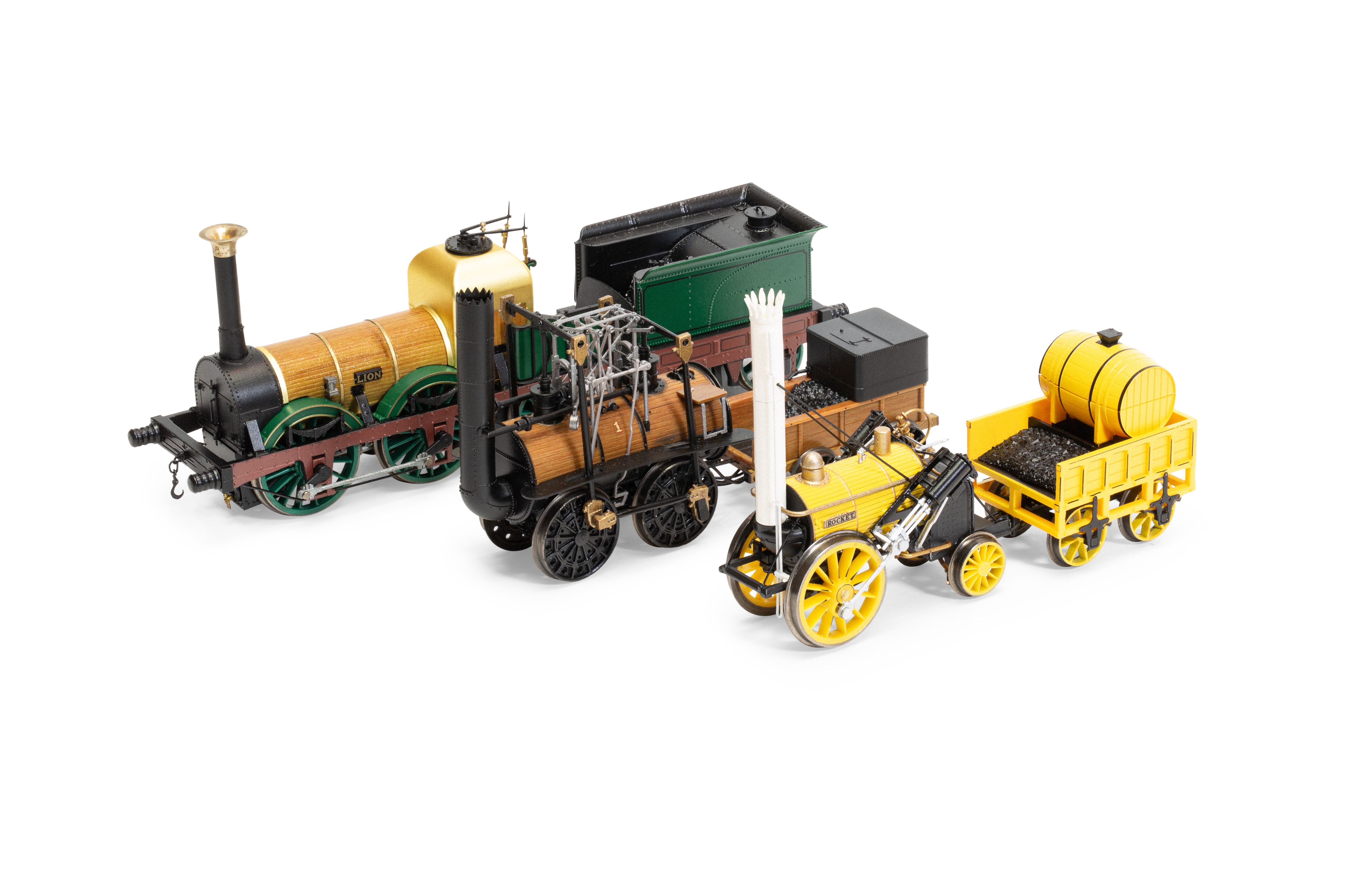 The Birth of the Railways Train Pack represents the formative years of steam-powered railways, with three locomotives built between 1825 and 1838, ushering in an age of steam. Locomotion No.1, Stephenson’s Rocket and No. 57 ‘Lion’ are all engineering masterpieces worthy of their place in railway history.