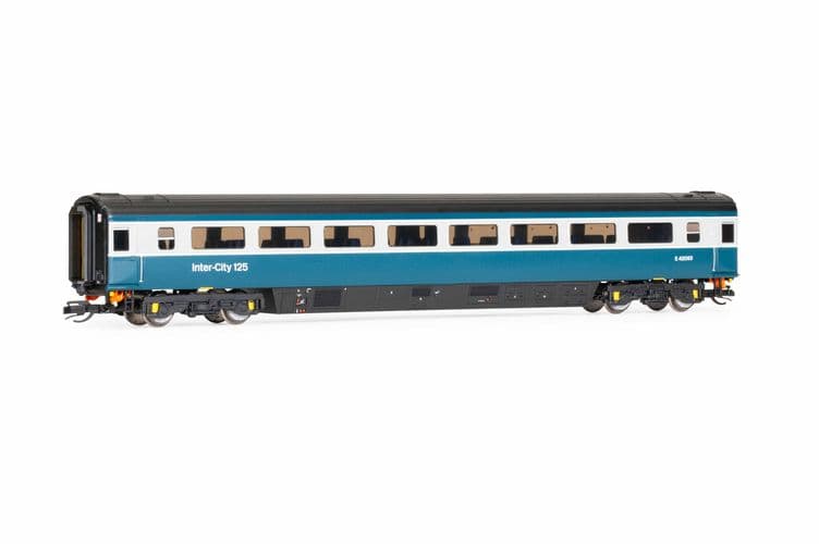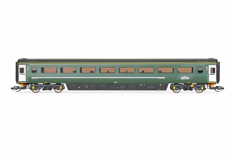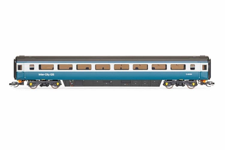 The latest, final Mk3 coach samples are also in three liveries to match the Class 43 locomotive models: BR Blue and Grey, InterCity Swallow and GWR Green. The coach samples shown below features BR Blue and Grey and GWR Green liveries.