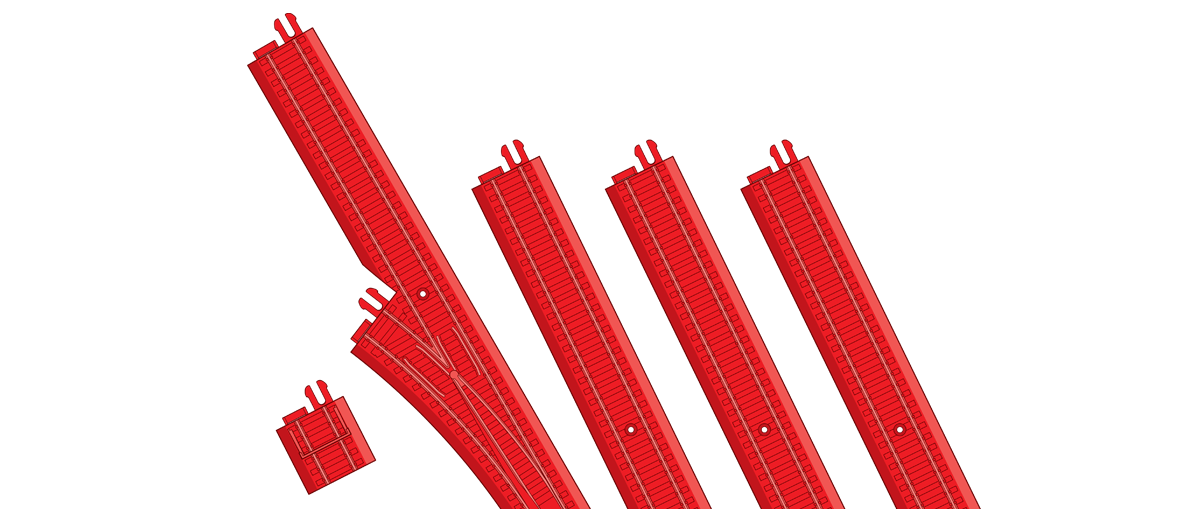 Build and expand the Playtrains layout with Track Extension Pack 1. This pack contains five pieces of bright red track to allow the Playtrains world to be expanded.