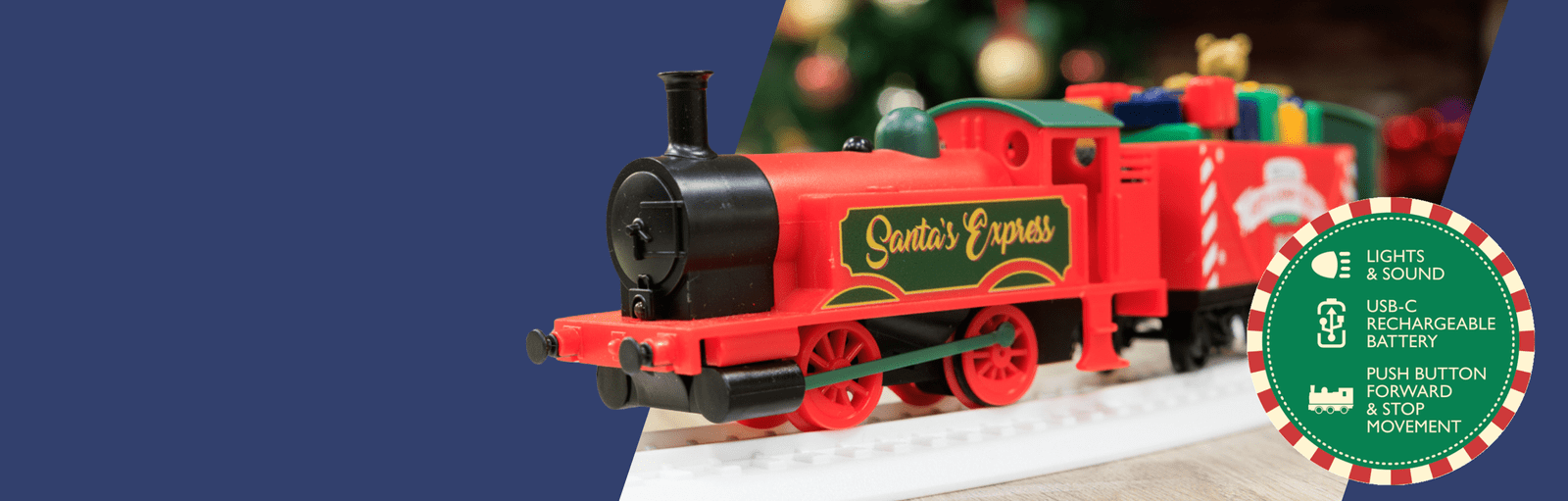 - Lights and sound for a captivating display with classic steam train sounds that fill the room with festive cheer.